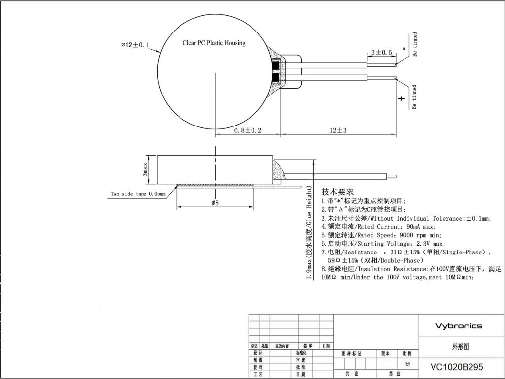 The internal color and form of this clear case coin motor can be customized in a number of different ways to meet your aesthetic design requirements. For example, the color of both the inner plastic frame (currently black or white) and the motors coils (currently copper) can be changed. We can also add a 3rd dummy coil to make the interior symmetrical. Other customizations are also possible.
