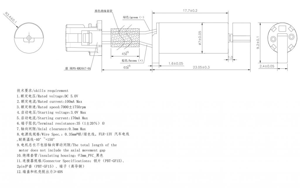 VZ7AV2K0760001L Automotive Cylindrical Vibration Motor Drawing