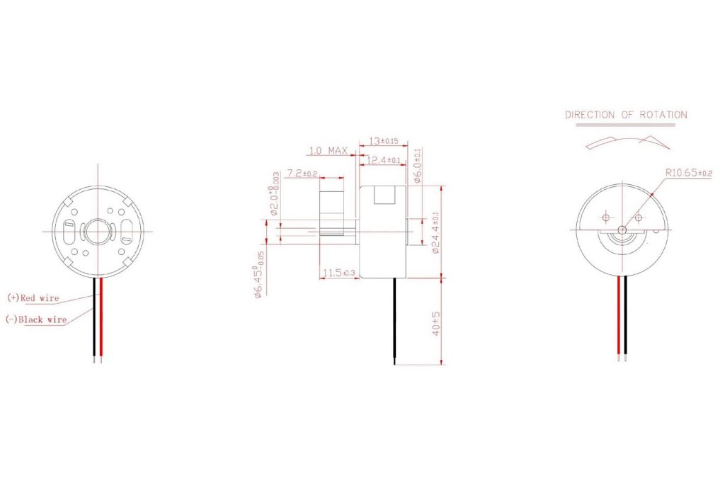 VJQ24-35F580C (old p/n JQ24-35F580C) Cylindrical Vibration Motor Drawing